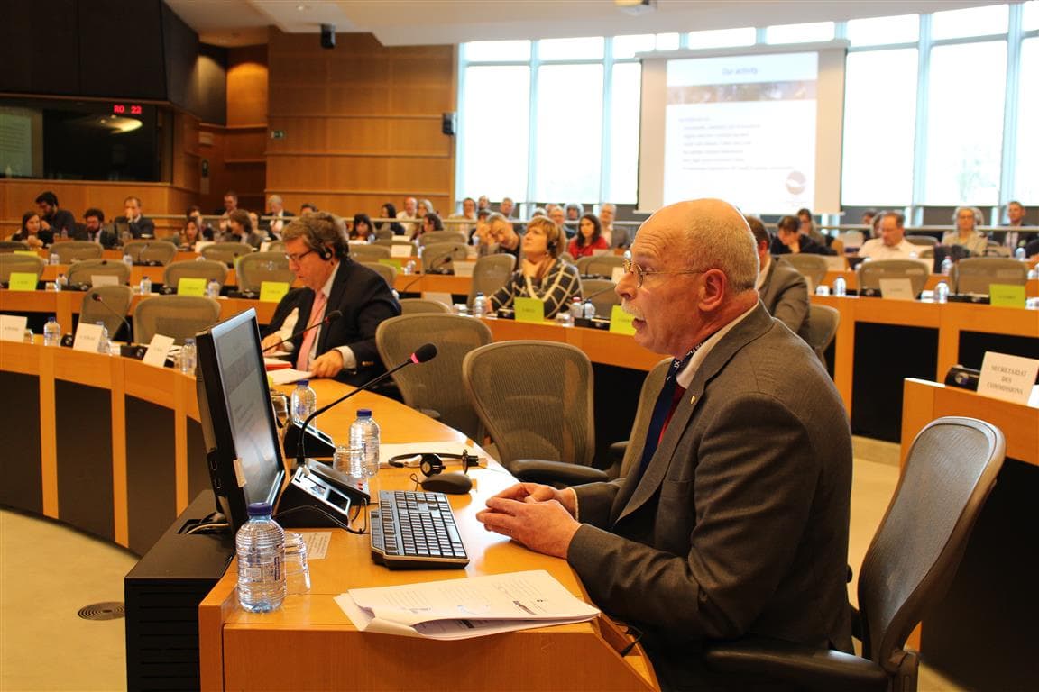 Fred Bloot, adjunct-directeur van de Sportvisunie en president van de European Anglers Alliance, spreekt in het Europarlement voor de hengelsport.