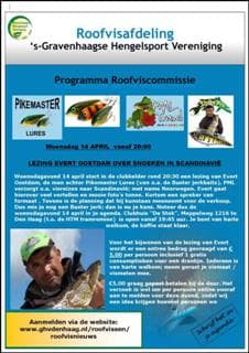 Aankondiging en foto van een lezing over snoeken in Scandinavië door Evert Oostdam.
