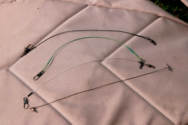 - Zwarte en groene standaard stalen onderlijn , geschikt voor de meeste situaties.