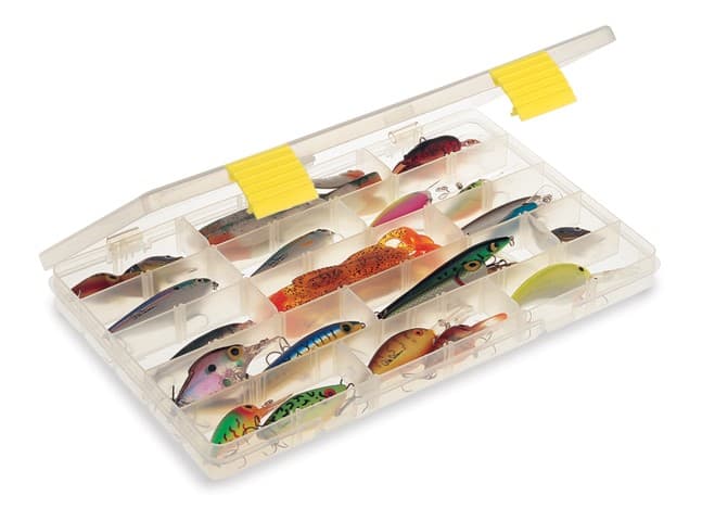 Berg kunstaas in een echte kunstaasdoos. Zo blijft het niet vastzitten. Let op: zacht kunstaas bevat weekmakers. Die laten plastic smelten. Een echte kunstaasdoos kan daartegen.