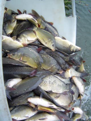 - Als de biomassa vooral uit kleine, productieve karpers bestaat (1, 2 kg), ontstaan negatieve effecten. Dan kunnen 50, 100 vissen per hectare al problemen geven. Daarom adviseren we voor heldere plantenrijke wateren een voorzorgsnorm van 80 kg karper per hectare, bij voorkeur bestaande uit grotere dieren.