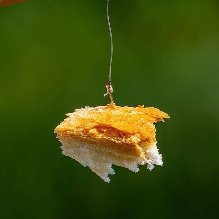 • Vang grote vis met broodvlok, kleinere vis met maden.