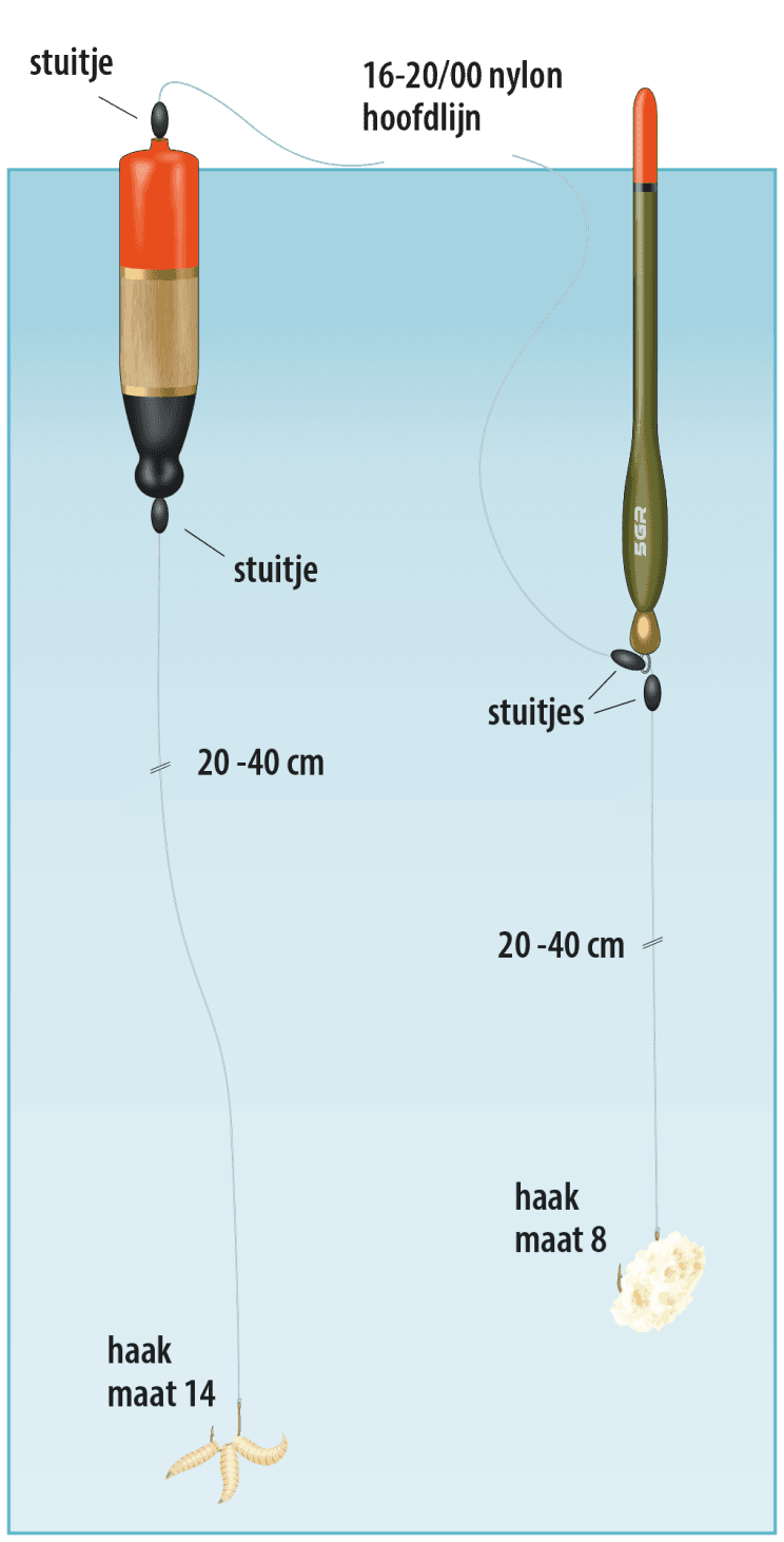 • Laat het aas langzaam zinken, bijvoorbeeld met een wafter.