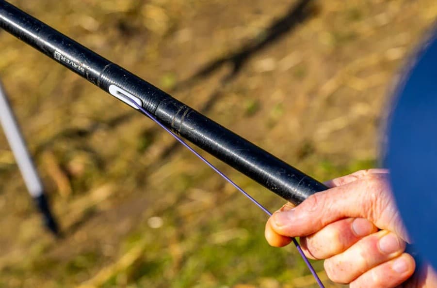 Bij het vissen met een vaste hengel voorzien van elastiek kun je de vis beter sturen door de hengeltop onder water te houden. Dit voorkomt dat de karper zich vastzwemt in obstakels zoals riet of waterplanten. Het elastiek vangt de schokken op, terwijl jij de regie behoudt. Zie het als een dans: jij leidt, de karper volgt.