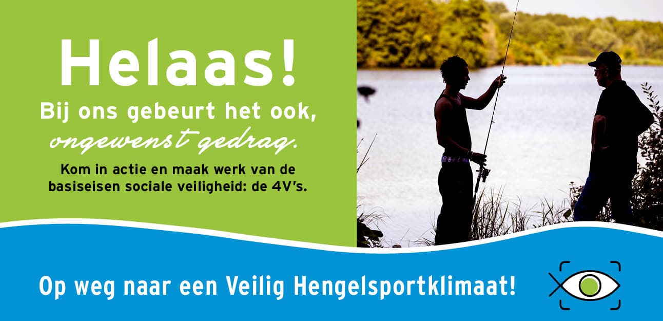Tijdens de Landelijke Verenigingsdag op 14 juni 2024 lanceerde Sportvisserij Nederland de campagne ‘Op weg naar een Veilig Hengelsportklimaat!’. Hierin brengen we sociale veiligheid bij onze aangesloten verenigingen onder de aandacht. De campagne loopt tot eind 2024 en gedurende die periode blijf je uitingen tegenkomen in (online) artikelen, interviews, flyers, banners en nieuwsbrieven. De flyer, poster en banner kun je hier bekijken en downloaden. Gebruik ze gerust om bestuursleden en vrijwilligers te informeren en kom met elkaar in actie! Zo blijven we aandacht geven aan sociale veiligheid en stimuleren we verenigingen dat ook te doen.