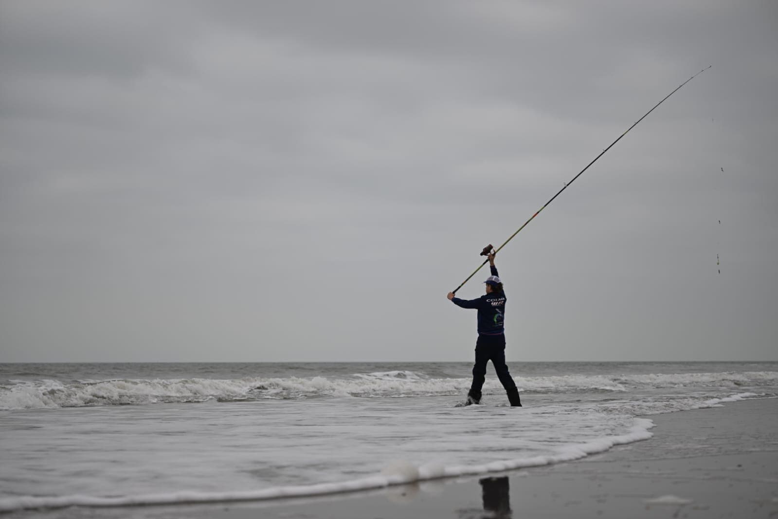 “Vissend op grote afstand met korte onderlijnen dacht ik schar en wijting te kunnen vangen, maar zo verliep het niet. In twee worpen ving ik slechts één klein botje”, blikt Pieter van de Zande (20) terug op de eerste wedstrijd van dit weekend. Hopend op actie switchte de jonge Zeeuw naar de feederhengel in combinatie met een klein ‘witje’ en een slikje. “Al snel kreeg ik beet en drie worpen op rij ving ik telkens een zeebaarsje. Omdat alleen de witjes goed waren, schakelde ik daar vervolgens helemaal naar over. Tien meter uit de kant ving ik zo nog een bot van 30 cm, waarmee ik de wedstrijd won.”