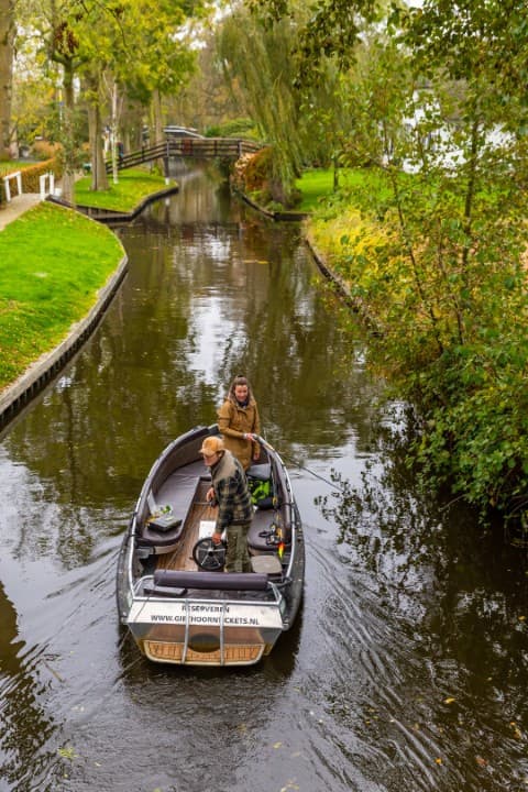 Waarom Giethoorn zo’n populaire bestemming is wordt duidelijk door de beelden die de drone maakt: een overmaat aan water in de vorm van sloten, vaarten en plassen, maar ook de vele bruggen en niet te vergeten de kenmerkende bultrugboerderijen. En overal in dit ‘Hollandse Venetië’ mag je met de VISpas vissen.
