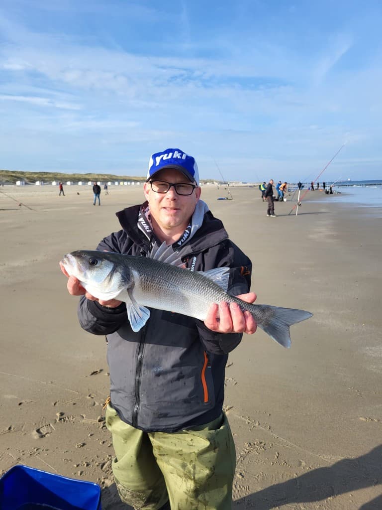 Bij wat ondieper water en kleinere vis kozen Arjan en zijn teamleden voor een subtiele aanpak, zoals een Portugese onderlijn van een meter van 22/00 nylon. Was het water wat dieper? Dan mikten ze met 40 centimeter lange onderlijnen van 30/00 nylon op de grotere vis. “En die aanpak wierp zijn vruchten af. Zeker met die grovere montage waren we in staat om de betere botten te vangen. Wellicht wisten we ten opzichte van de andere deelnemers daar net een klein verschil te maken.” Hoe dichtbij de botten te vangen waren, zo ver weg moest je voor de zeebaars. Rond de 100 meter, ter hoogte van de verkleuring van het water, voor het echt dieper wordt.