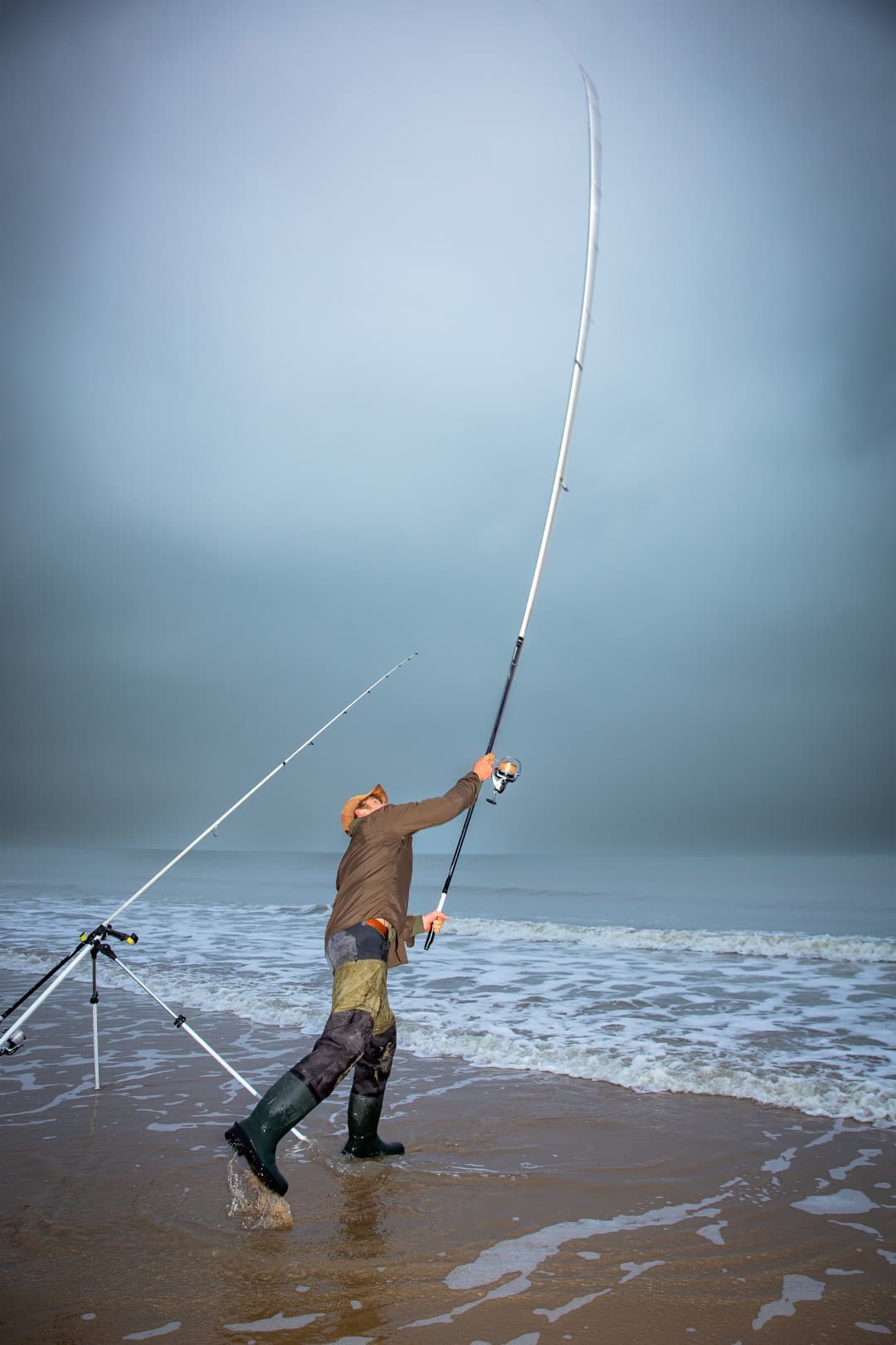 Nathalie is een gedreven strandvisser die uit ervaring weet dat botten vaak op zeer ondiep water te vinden zijn. Daarom vist ze met een hengel vlak onder de kant, terwijl haar andere montage richting horizon gaat. Tamme begint met beide hengels op grote afstand. Opvallend is dat beide vissers met de loodvrije werpgewichten moeiteloos 100 meter en verder kunnen werpen. Het wachten is op de eerste aanbeet.