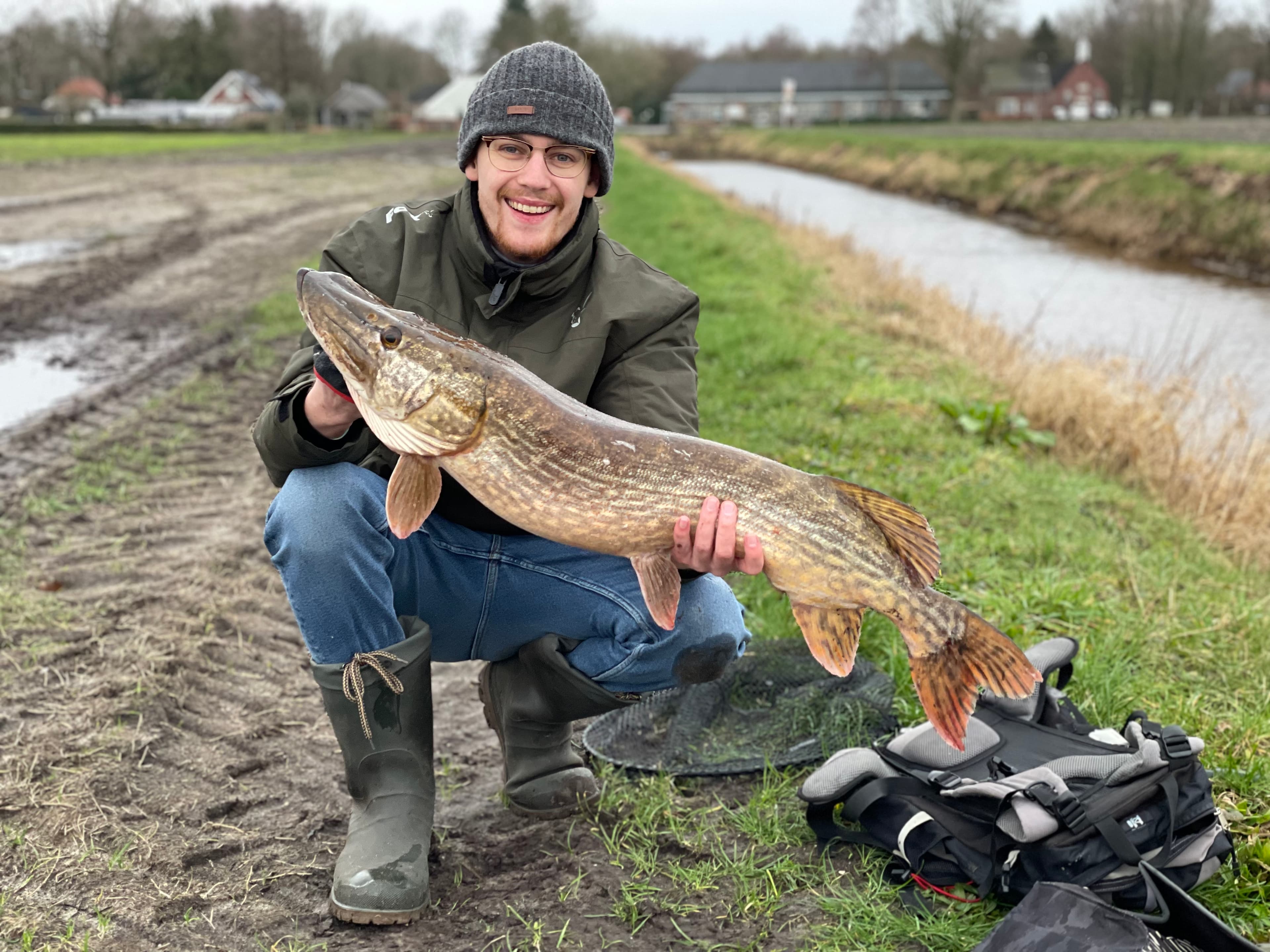 In smalle sloten leven soms verrassend grote snoeken. Freek Egas weet dat en werd beloond met deze ‘krokodil’.