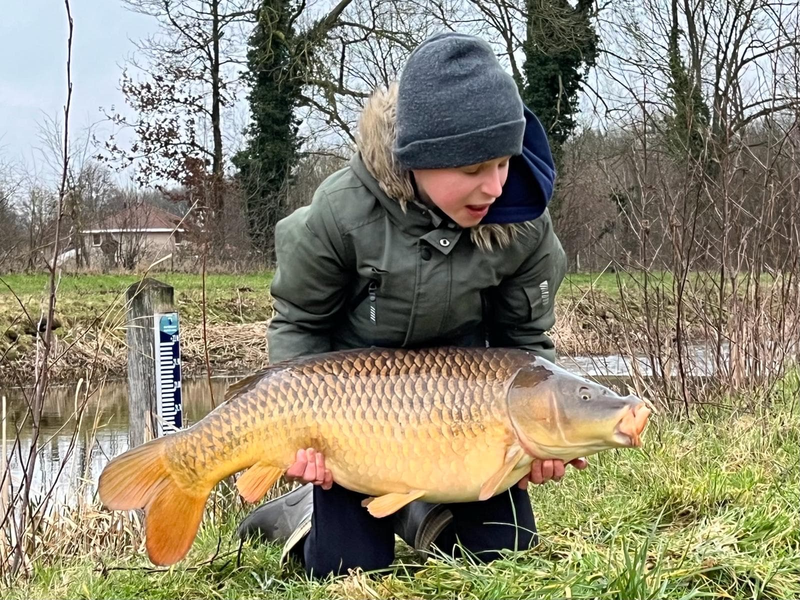Owen te Kaat viste afgelopen winter gewoon door op karper. Dat hij succesvol was, bewijst hij wel met deze mooie schubkarper.