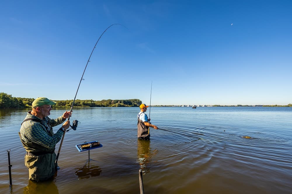 In overleg met de beroepsvisserij is de visserijdruk op brasem in het Gooimeer sterk afgenomen en gaat het met de vloermatten van dit randmeer weer de goede kant op. En dat hebben Marco en Daniël geweten! Wadend met de feederhengel gaat het helemaal los en vangen ze o.a. monsterbrasems tot maar liefst 68 centimeter.
