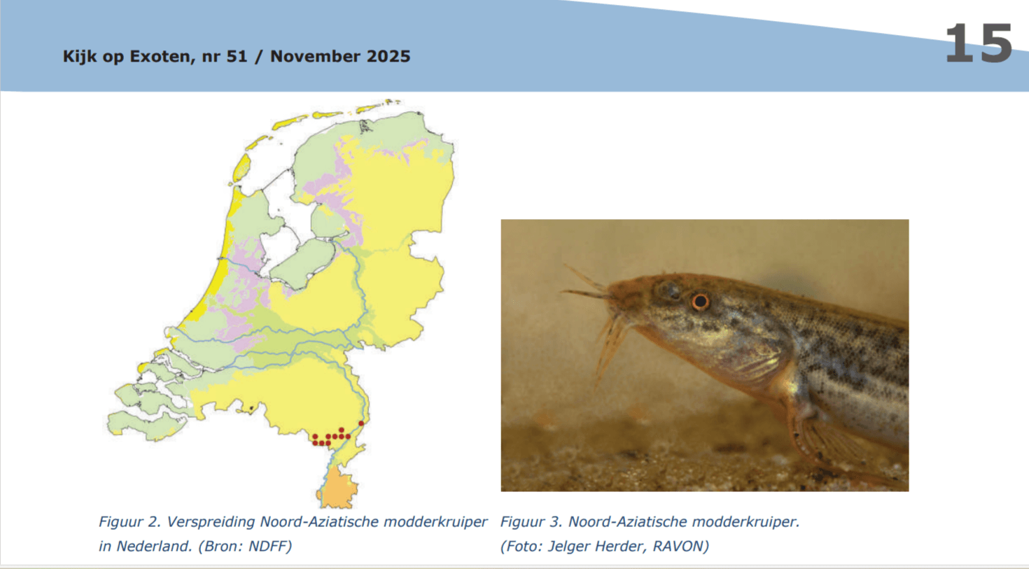 van de inheemse soort aan. Ook voedselconcurrentie en de overdracht van ziekten zijn risico’s die de Noord-Aziatische modderkruiper met zich mee kan brengen.