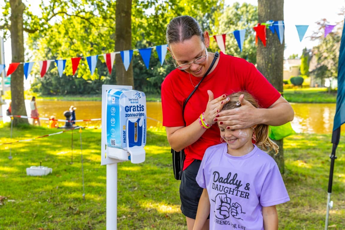 Bij diverse wedstrijden en evenementen, zoals de ZomerVISkaravaan, plaatst Sportvisserij Nederland dispensers met zonnebrandcrème.