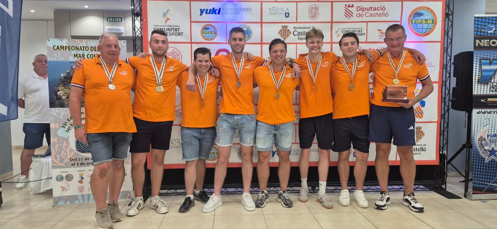 De bronzen U21-ploeg bestaande uit vissers Mathias Baas, Maarten Bom, Daan Ranzijn, Martijn Storm, Martijn Wisse, reserve Quinten van der Zande, bondscoach Martin van de Drift en assistent coach Remi Lindhout.