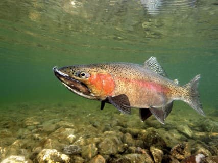Tijdens een duik in het Oostvoornse Meer paaiende regenboogforellen tegenkomen: in alle bescheidenheid durf ik te beweren dat niet veel duikers dit geluksmoment hebben beleefd.