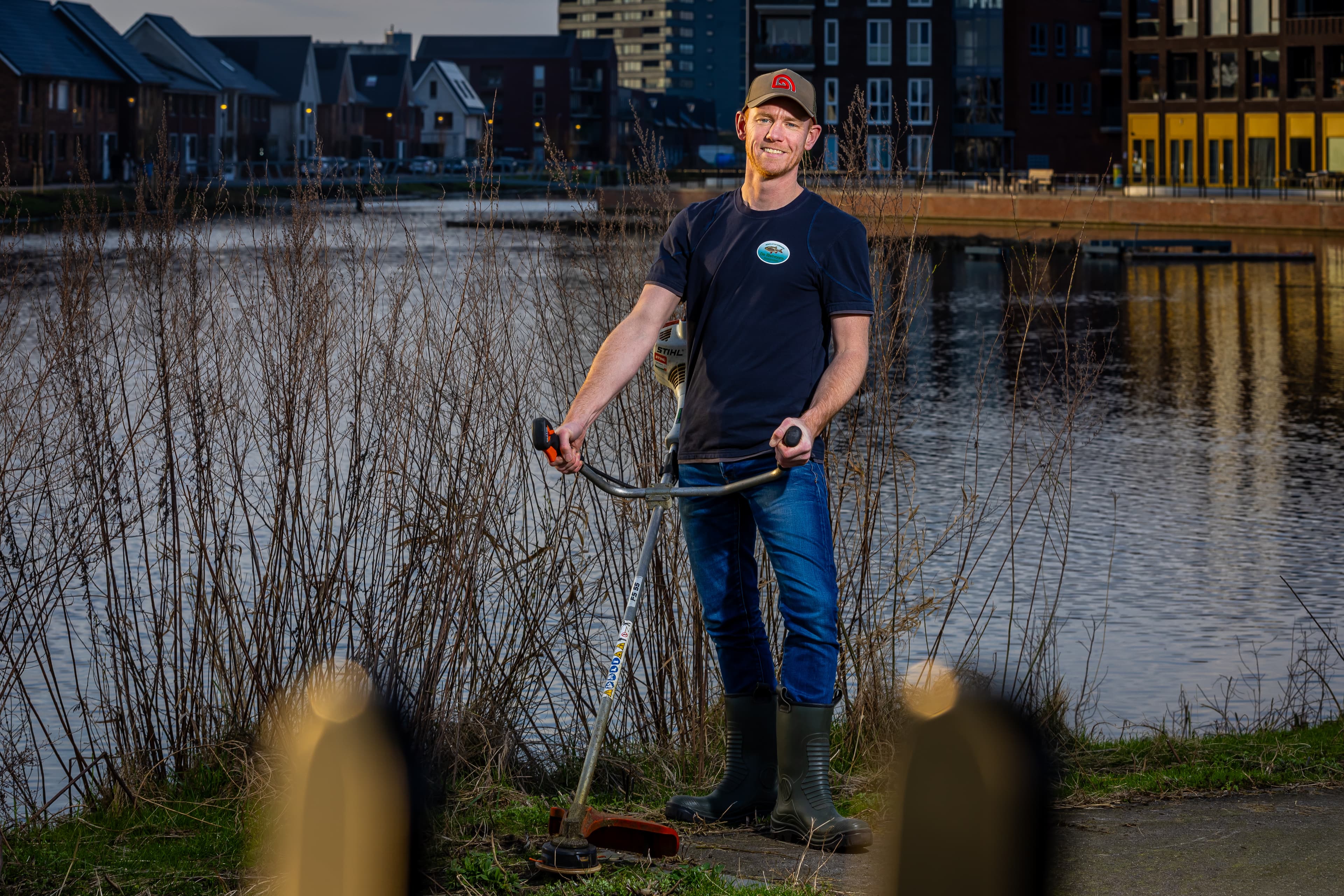 Corné van Dijk coördineert het onderhoudsteam van HSV De Rietvoorn uit Veenendaal. Door hun inzet is de waterkwaliteit goed en de visstand gevarieerd. "Je kunt hier prima wit- en karpervissen. De kroeskarper komt hier voor. Daardoor is het interessant voor alle sportvissers.")