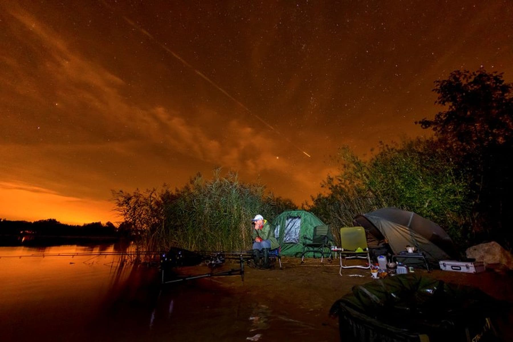 Schuilmiddel of tentje bij het nachtvissen