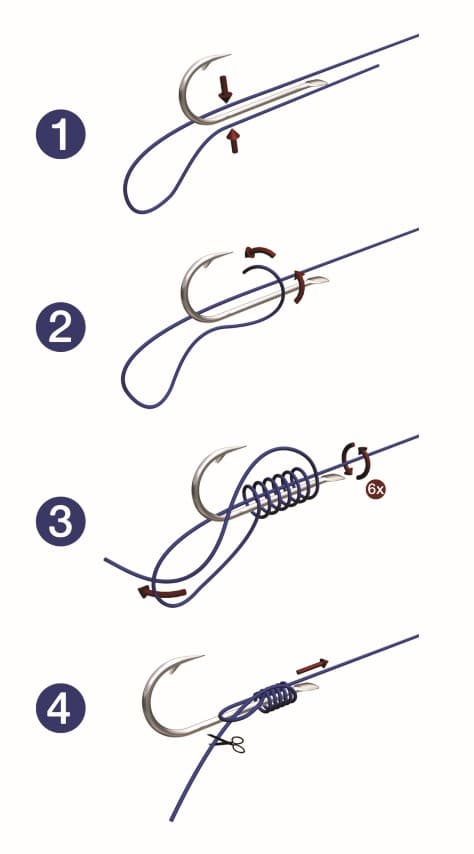 - Wikkel het losse uiteinde vijf keer om de hoofdlijn.