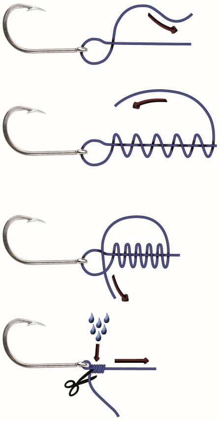 - Bevochtig de knoop en trek strak. Knip het uiteinde kort af.