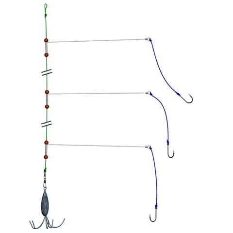 Een paternoster werkt goed vanaf de kant bij platvis. Gebruik een dikke hoofdlijn van 0,50, 0,70 mm. Boven zet je een lus. Onder monteer je een speldwartel.