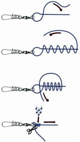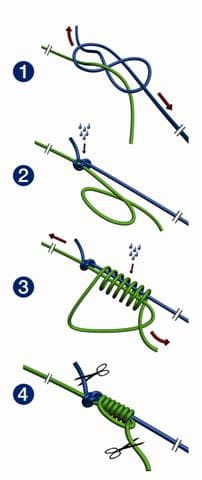 Je gebruikt deze knoop om een wartel aan een nylon lijn te bevestigen.