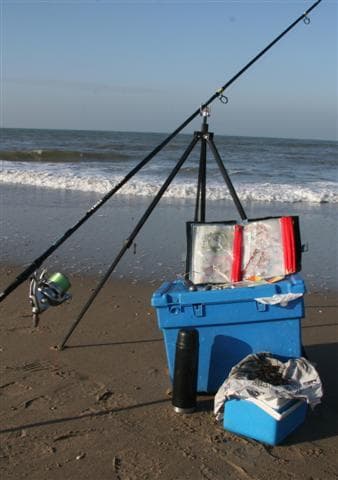 Als je weet waar je gaat vissen, pak je spullen. Bij zeevissen heb je niet veel nodig. Vaak moet je wel een flink stuk lopen. Gebruik een strandkar om je spullen te vervoeren.