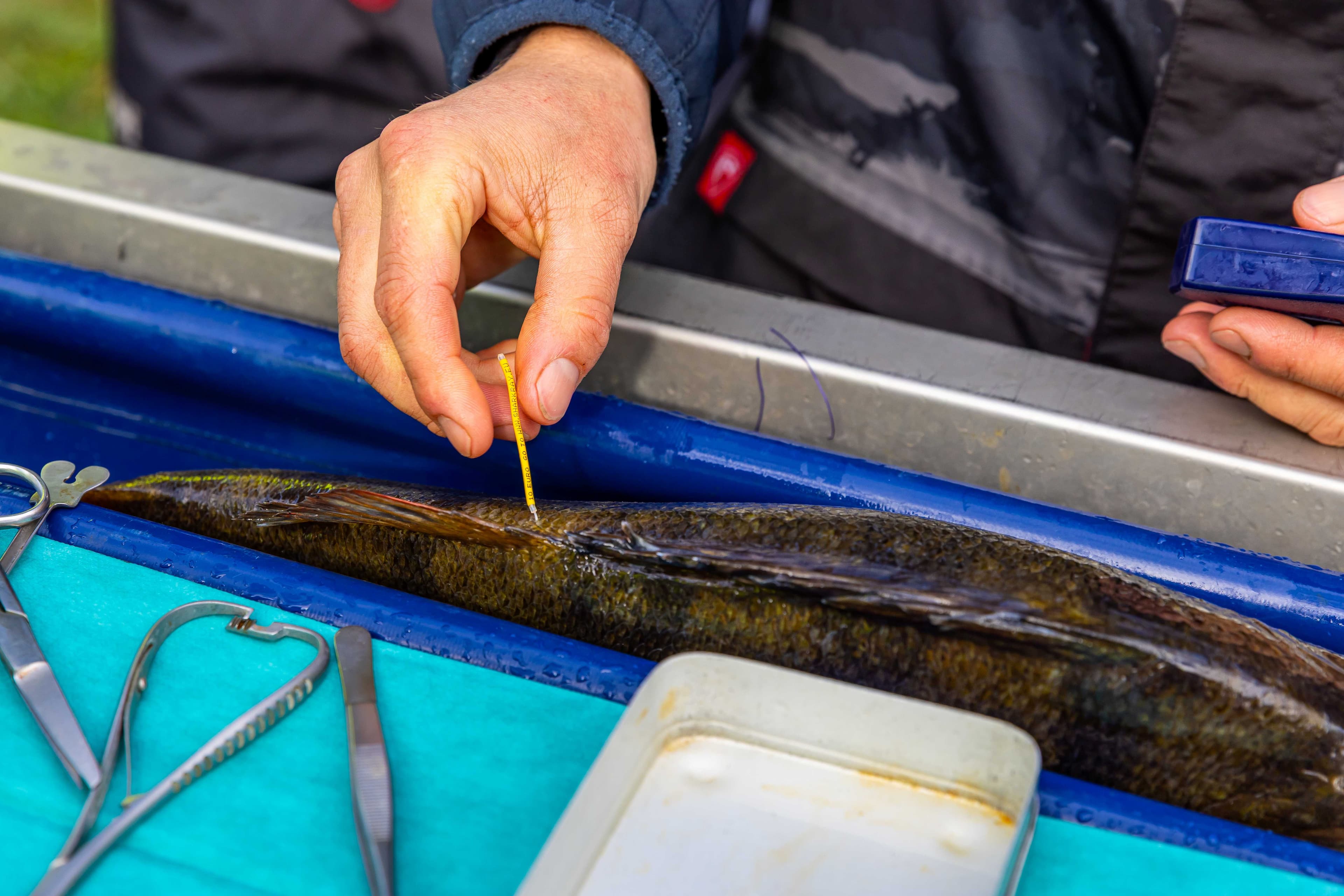 De baarzen in het onderzoek worden voorzien van een floyd-tag. De terugvangsten van deze duidelijk gemerkte vissen kunnen extra informatie verschaffen over groei en migratiegedrag.