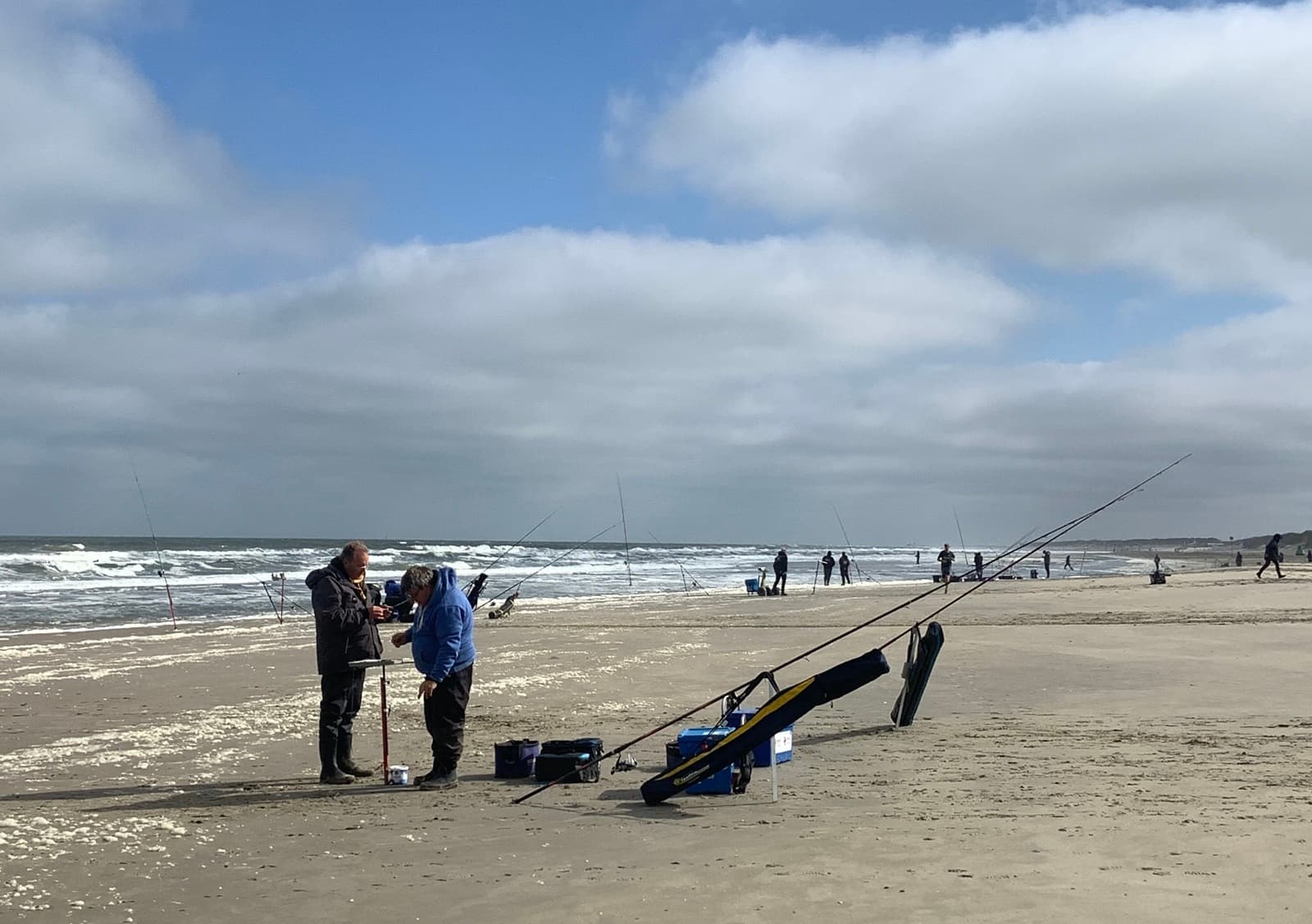 De vereniging Hoeksche Strandvissers had hun schitterend gelegen verengingsgebouw beschikbaar gesteld en het vervoer op het strand geregeld. De onderlinge stekafstand was aan de korte kant, daar leren we weer van.