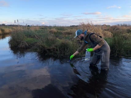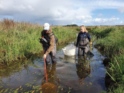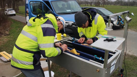 In het veld wordt regelmatig de waterkwaliteit bemonsterd.