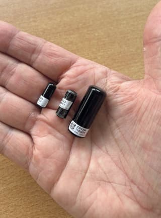 De kleine zenders (foto rechts) die in de buikholte van een vis worden geplaatste waargenomen door een onderwater geplaatste hydrofoon (foto links). Iedere vis heeft een unieke code.