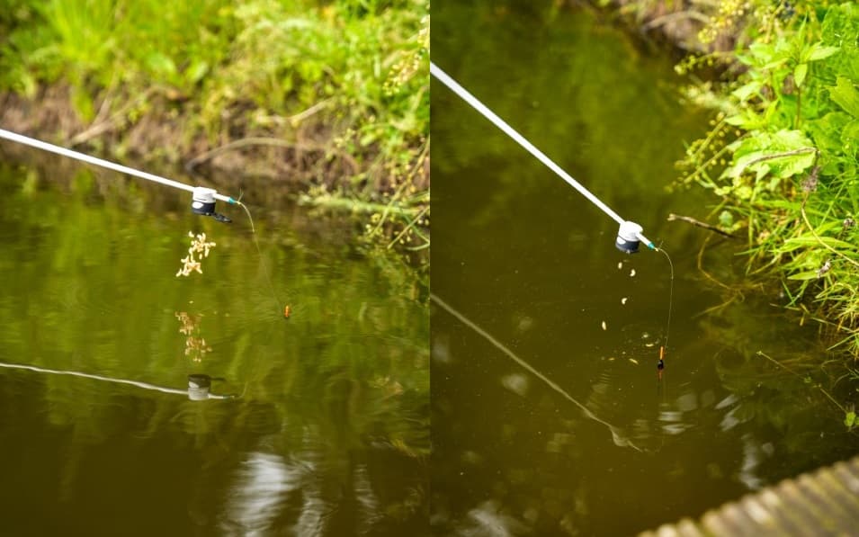 Is de magneet juist afgesteld, dan opent de deksel door gecontroleerd tegen de hengel te tikken. Zo valt de volledige inhoud van de pot in het water. Dit is ideaal om azende vissen in één keer te bedienen en zo de rust op de stek te bewaren. Bij een maximale ‘sluiting’ valt de deksel echter niet open en kun je het aas druppelsgewijs lossen met behulp van de drie gaten in de deksel. Deze methode is bedoeld om vis te lokken.